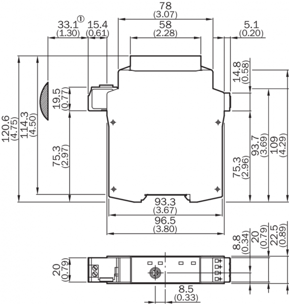 | Размеры (Ш x В x Г) | 22,5 mm x 96,5 mm x 120,6 mm |