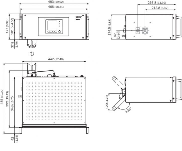 GMS810 FIDOR и GMS811 FIDOR: вход анализируемого газа сбоку