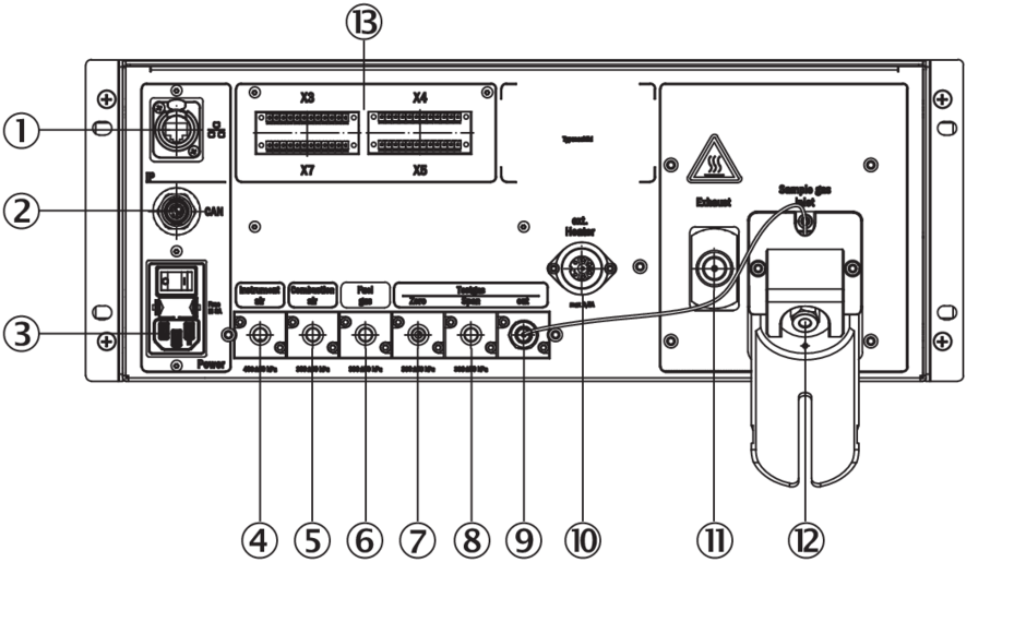 GMS810 FIDOR и GMS811 FIDOR: вход анализируемого газа на задней панели