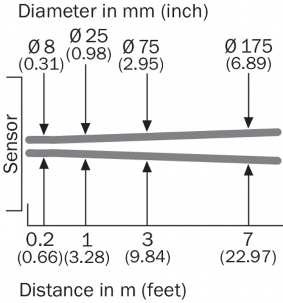 Диаграмма расстояний срабатывания GRL18S
