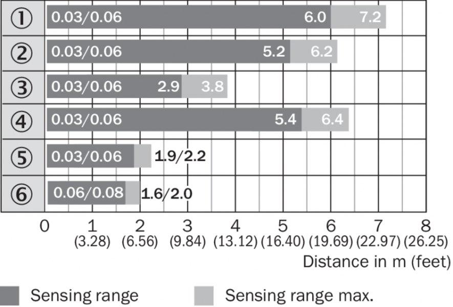 Диаграмма расстояний срабатывания GRL18S