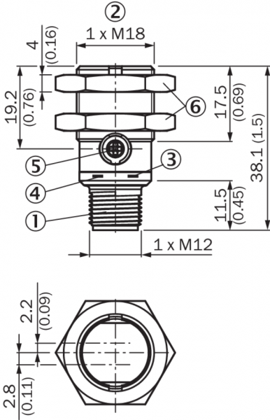 Габаритный чертеж GR18S, металл, штекер, осевой, регулируемый