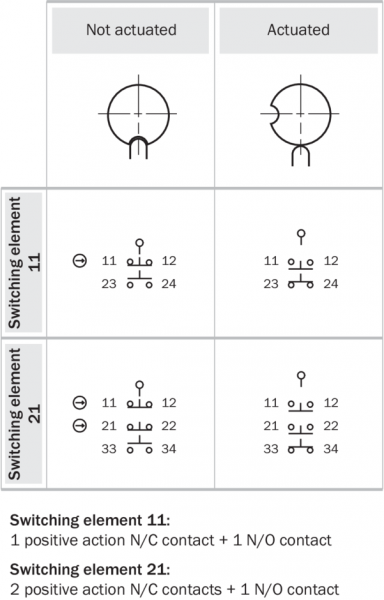 | Безопасное состояние в случае возникновения ошибки | Выключатель не имеет внутренней функции обнаружения ошибок и в случае неисправности не может перейти в безопасное состояние. Обнаружение ошибок осуществляется с помощью подключенного логического блока, направленного на обеспечение безопасности. |