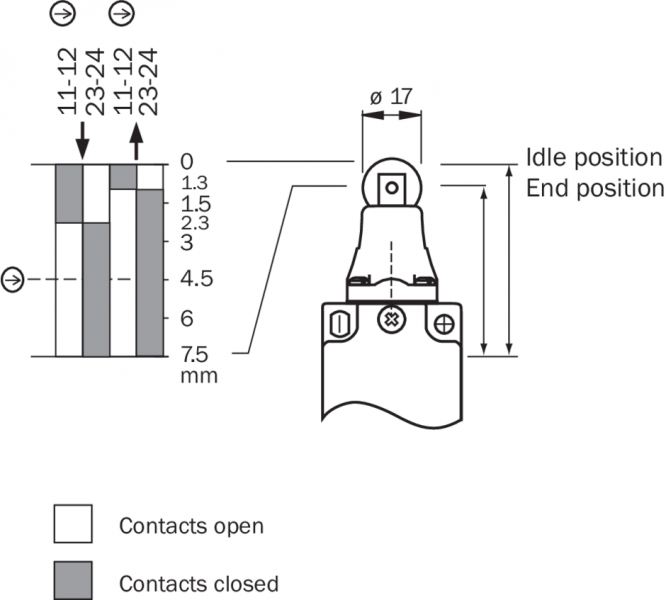 | Безопасное состояние в случае возникновения ошибки | Выключатель не имеет внутренней функции обнаружения ошибок и в случае неисправности не может перейти в безопасное состояние. Обнаружение ошибок осуществляется с помощью подключенного логического блока, направленного на обеспечение безопасности. |