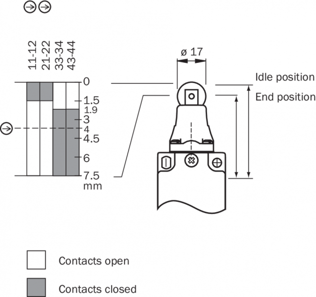 Безопасное состояние в случае возникновения ошибки | Выключатель не имеет внутренней функции обнаружения ошибок и в случае неисправности не может перейти в безопасное состояние. Обнаружение ошибок осуществляется с помощью подключенного логического блока, направленного на обеспечение безопасности. |