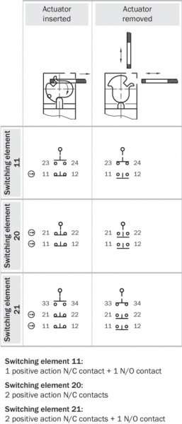 | Безопасное состояние в случае возникновения ошибки | Выключатель не имеет внутренней функции обнаружения ошибок и в случае неисправности не может перейти в безопасное состояние. Обнаружение ошибок осуществляется с помощью подключенного логического блока, направленного на обеспечение безопасности. |