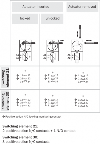 | Безопасное состояние в случае возникновения ошибки | Выключатель не имеет внутренней функции обнаружения ошибок и в случае неисправности не может перейти в безопасное состояние. Обнаружение ошибок осуществляется с помощью подключенного логического блока, направленного на обеспечение безопасности. |