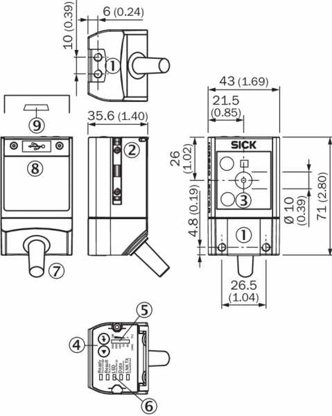 Размеры (Д x Ш x В)71 mm x 43 mm x 35,6 mm 1)