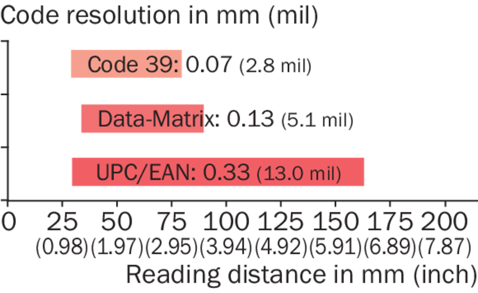 | Разрешение кода | ≥ 0,07 mm 1) ≥ 0,13 mm 2) |