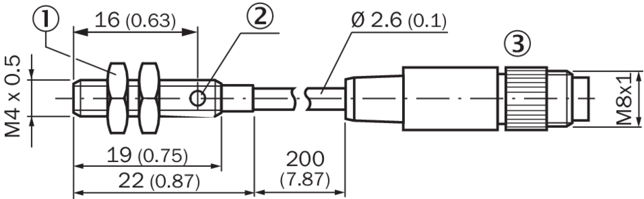 | Тип подключения | Кабель с разъемом M8, 3-конт., с гайкой с накаткой, 0,2 m 1) |