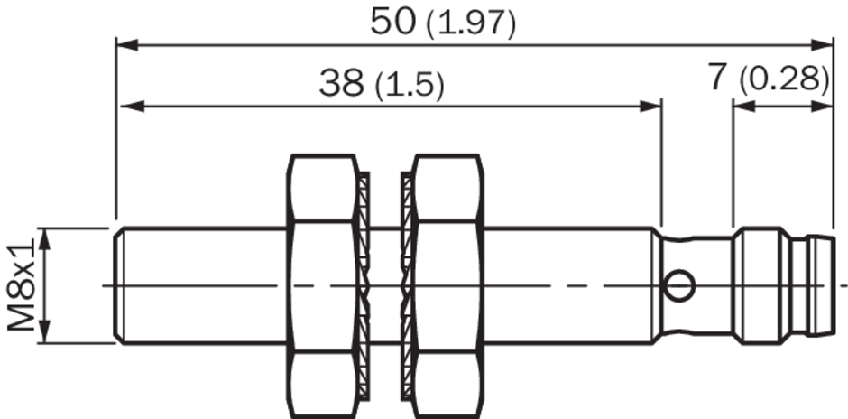 Габаритный чертеж IMB08 стандарт, штекер M8, вровень с плоскостью