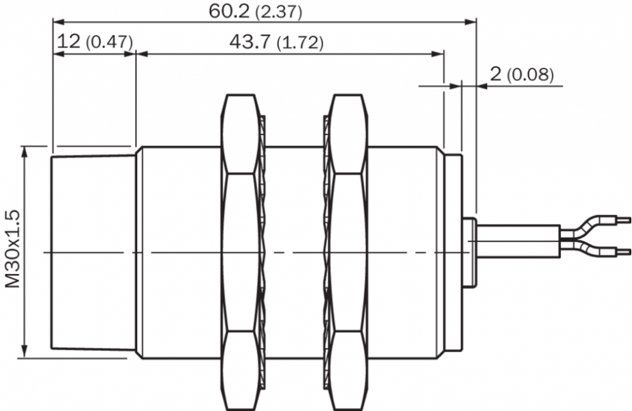 Габаритный чертеж IMB30 стандарт, кабель, не вровень с плоскостью