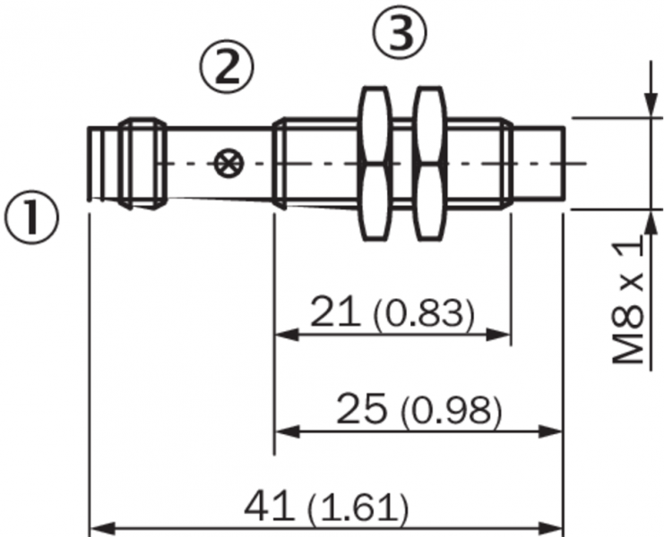 Габаритный чертеж IME08 короткий вариант, штекер, не вровень с плоскостью