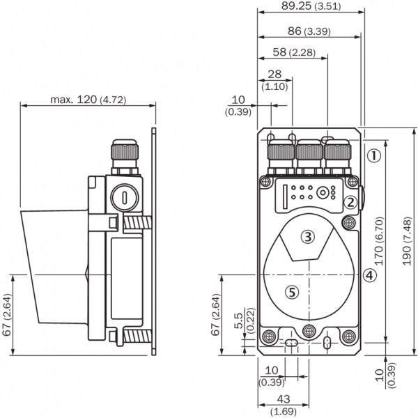 Габаритный чертеж ISD300 RS-485/PROFIBUS, ISD300 RS-422/Interbus, ISD300 DH+/RIO, ISD300 DeviceNet/CANopen