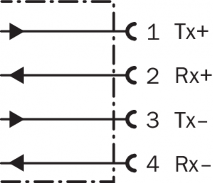 | Тип подключения | 1 разъем Ethernet M12, 4-конт., D-кодир.1 штекер питания M12, 4-конт., A-кодир. |