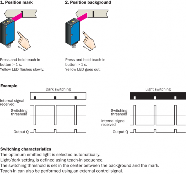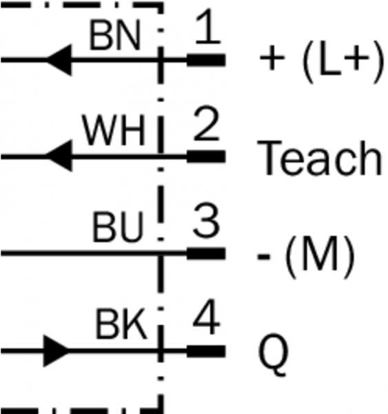 | Вход, настройка (ET) | PNP Teach U > 8 V Run: U < 2 V |