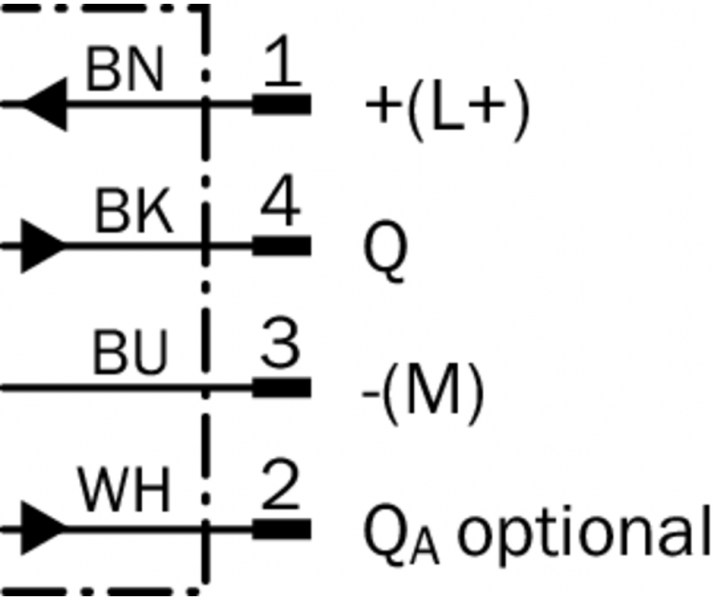 | Дискретный выход (напряжение) | PNP: HIGH = UВ– ≤ 2 В/LOW прибл. 0 В |