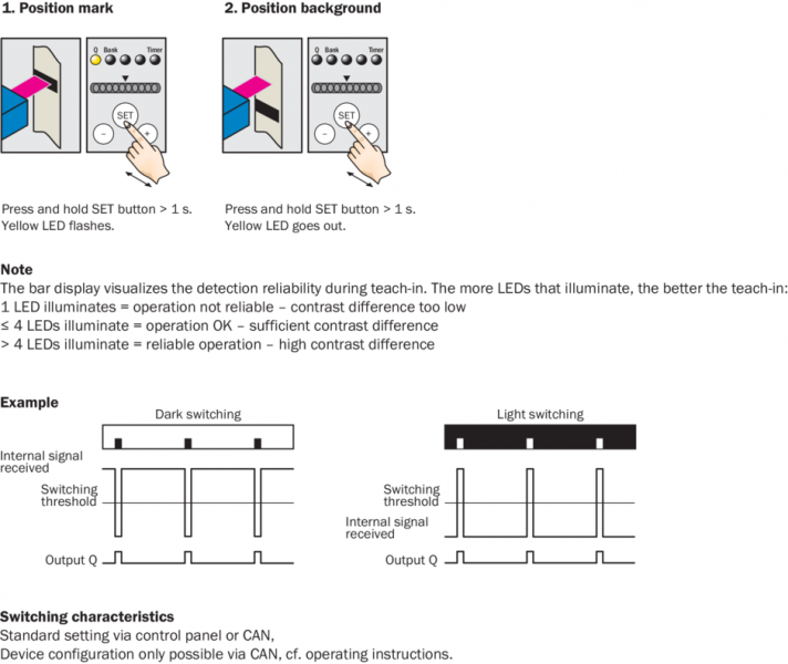 | Вход, настройка (ET) | NPN Teach: U < 2 V Run: U = 10 V ... < UV |