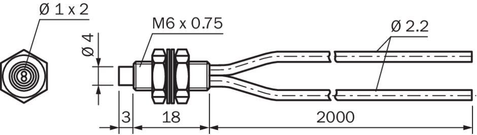 | Структура сердечника | 2 x Ø 1,0 mm 3) Моноволокно |