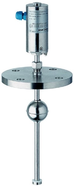 Данные датчики уровня служат для непрерывного измерения уровня жидкостей. Их принцип действия основывается на определении положения магнитного поплавки по магнитострикционному принципу. Процесс измерения запускается токовым импульсом. Ток создает кругообразное магнитное поле (3) по всей длине провода (1) из магнитострикционного материала, натянутого в трубе скольжения. В точке измерения (уровень жидкости) находится поплавок с постоянным магнитом (4), который функционирует как датчик положения. Магнитное поле поплавка скручивает провод. При наложении обоих магнитных полей в проводе возникает механическая волна (5). Она преобразовывается в электрический сигнал с помощью пьезокерамического преобразователя в голове датчика (2) на конце провода. Благодаря измерению времени прохождения волны возможно с высокой точностью определить точку выхода механической волны и определить положение поплавка.