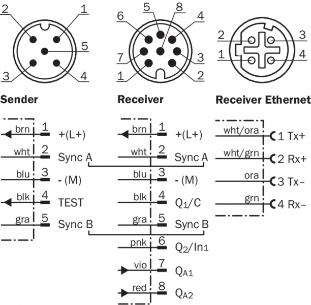 Тип и схема подключения Штекер M12, 5/8-конт., аналоговые выходы QA