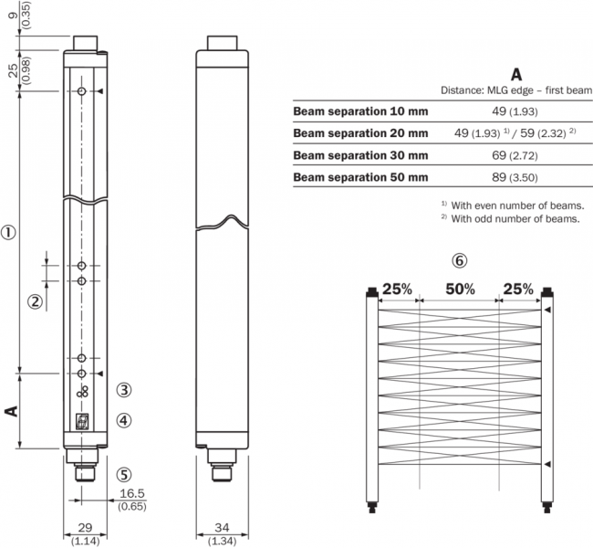 Минимальная дальность сканирования | Перекрестный луч: ≥ 840 mm |