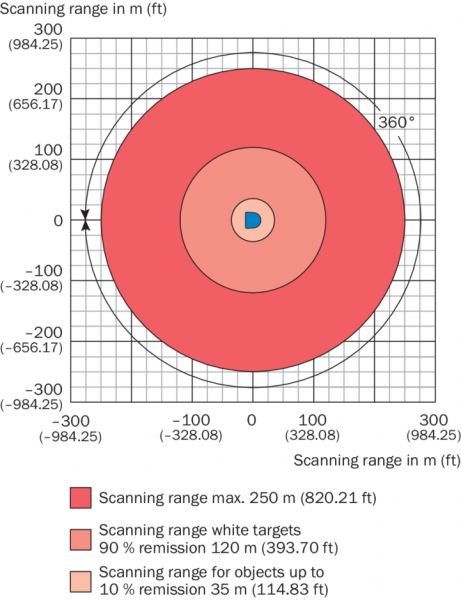 Дальность сканирования при яркости 10 %