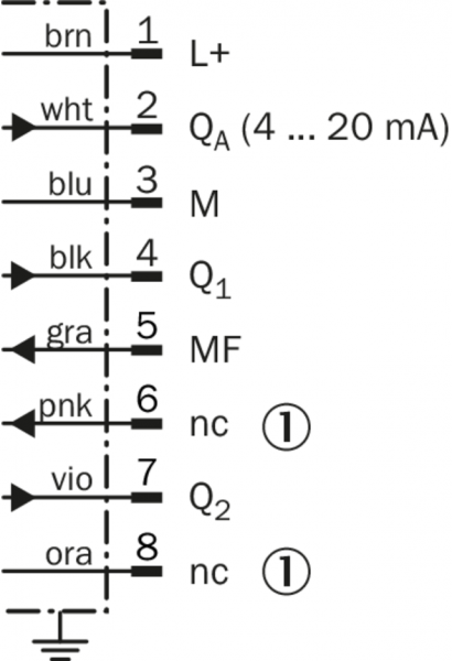Тип подключения OD2-xxxxxxA0 OD2-xxxxxxC0 OD2-xxxxxxI0 OD2-xxxxxxU0 штекер M12, 8-конт.
