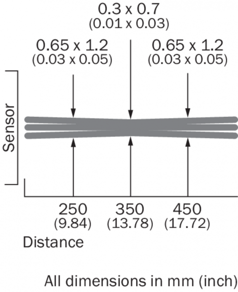 Тип. размер светового пятна (расстояние)300 µm x 700 µm (350 mm)