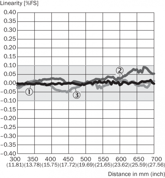 2) Измерение на 90 % отражения (керамика, белая), для OD5-25x измерение на зеркале, выбранная установка среднего значения: 256 или 4096 для OD5-25x, постоянные условия окружающей среды.
