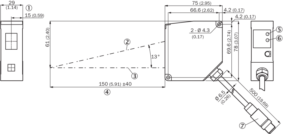 Тип. невосприимчивость к постороннему свету | Искусственное освещение: ≤ 3.000 lx 1) Солнечный свет: ≤ 10.000 lx |