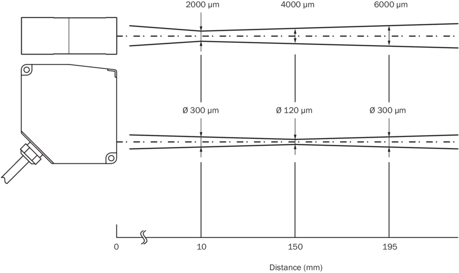 | Тип. размер светового пятна (расстояние) | 120 µm x 4.000 µm |