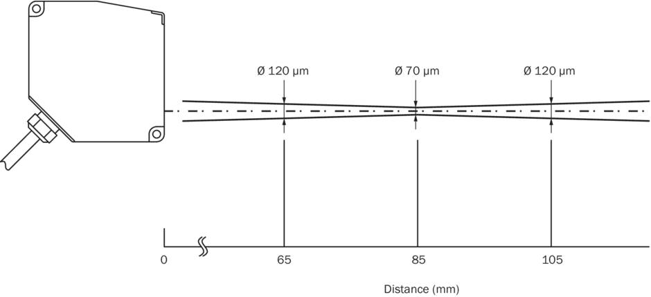 Тип. размер светового пятна (расстояние)Ø 70 µm