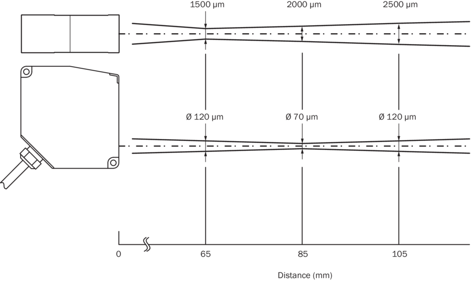 Тип. размер светового пятна (расстояние)70 µm x 2.000 µm