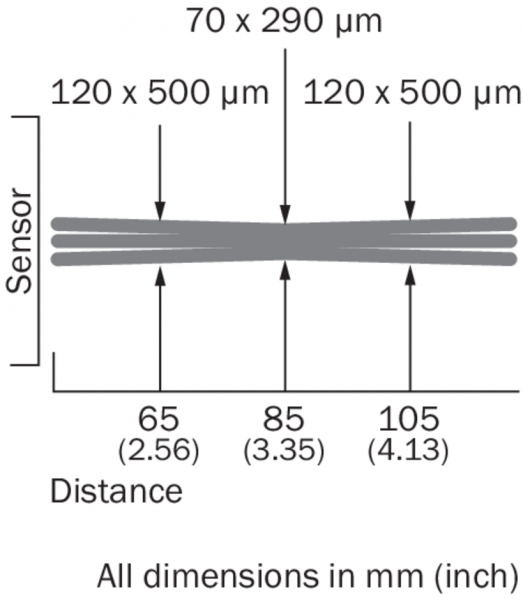 | Тип. размер светового пятна (расстояние) | 70 µm x 290 µm (85 mm) |