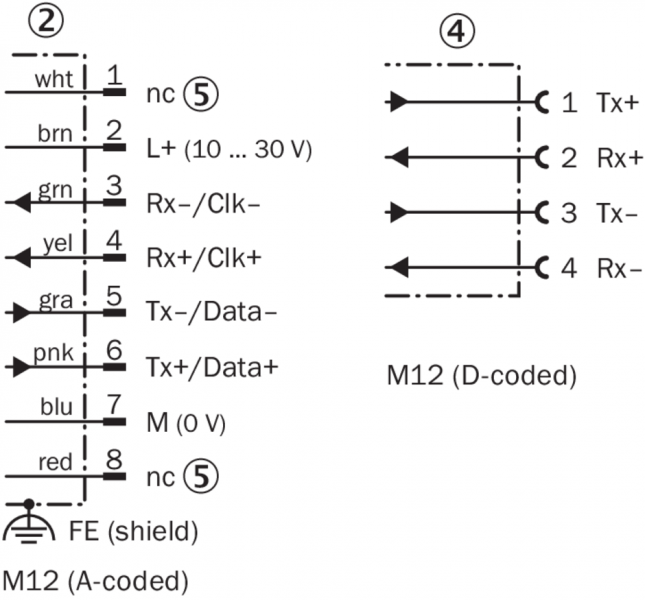 Схема соединений OLM100-10x1 OLM100-10x3 1 x гнездо M12, 4-конт. 1 x штекер M12, 8-конт.