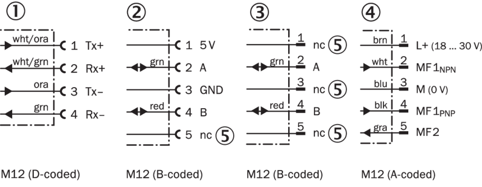 Тип подключения Гнездо 1 x M12, 4-конт. 1 x M12, 5-конт., штекер 1 x M12, 5-конт.