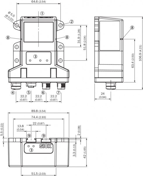 Габаритный чертеж OLM200, PROFIBUS
