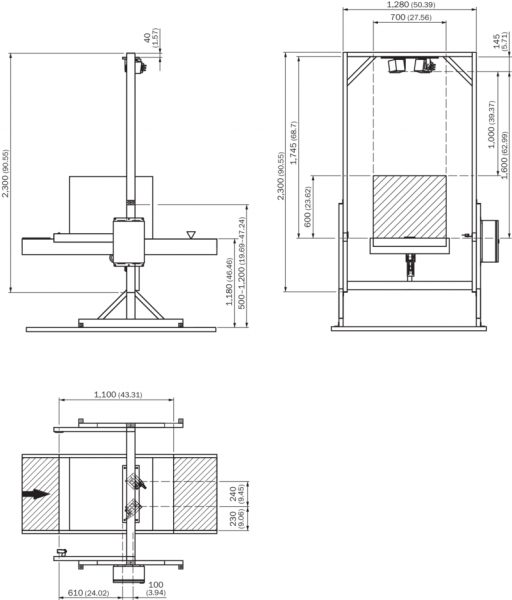 Размеры, система (Д x Ш x В) | 1.100 mm x 1.280 mm x 1.745 mm (минимальные, максимальные размеры в зависимости от ширины и высоты поля считывания) |