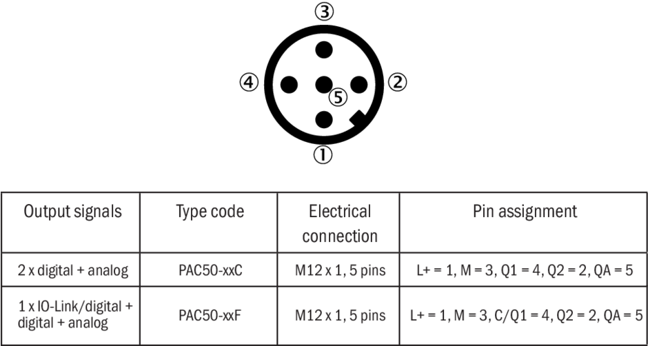 | Тип подключения | Круглый штекерный соединитель M12 x 1, 5-контактный |
