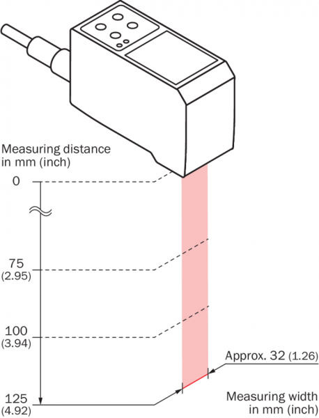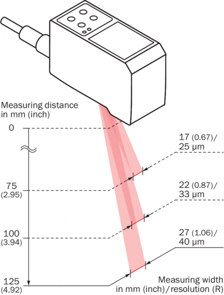 | Ширина диапазона измерения (при расстоянии измерения) | 17 mm (75 mm) 22 mm (100 mm) 27 mm (125 mm) |
