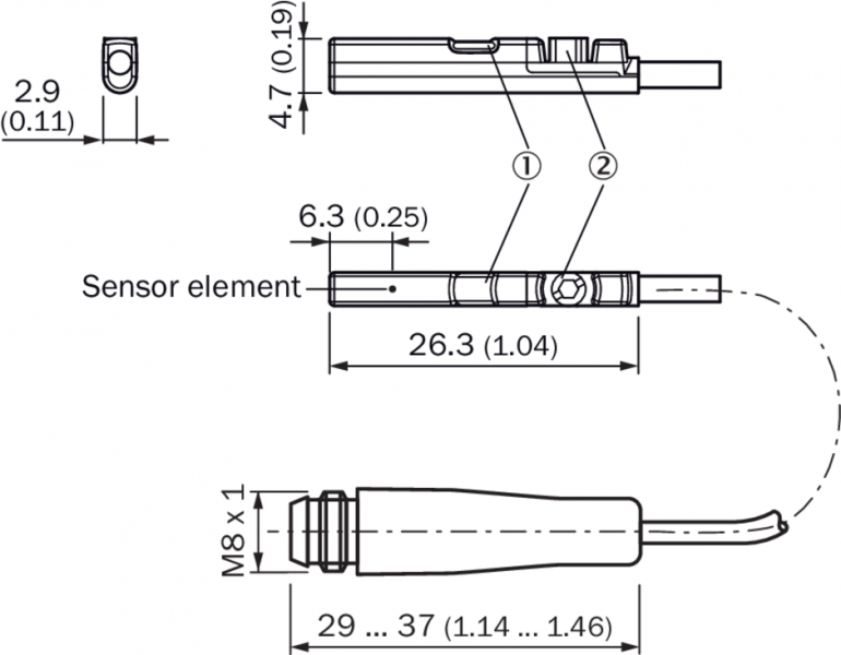 Тип подключенияКабель с разъемом M8, 2-конт., 0,3 m