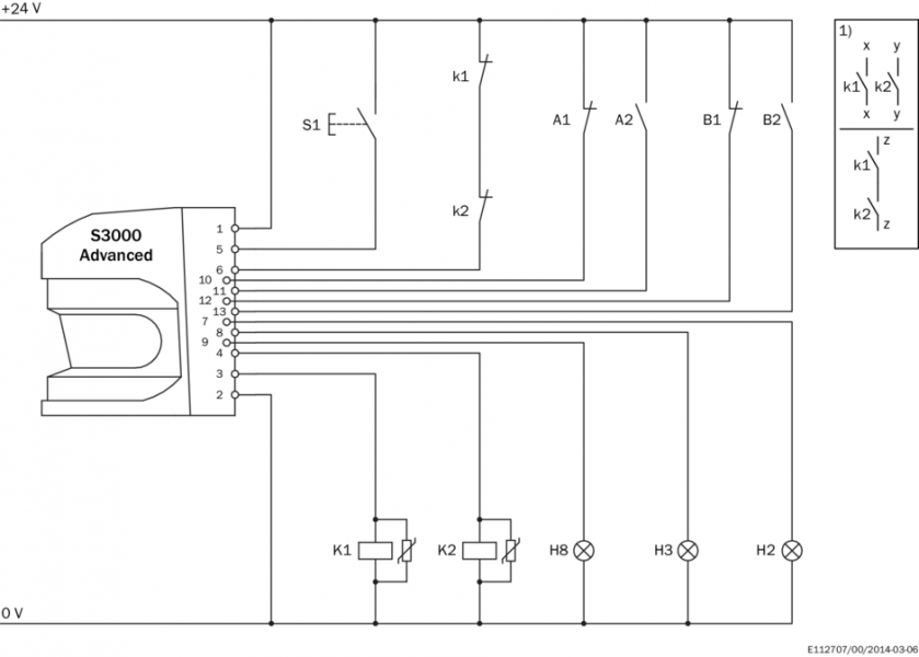 | Выходы | | Предохранительные выходы (устройство переключения выходного сигнала OSSD) | 2 x 500 mA | | Диагностические выходы | 3 x 100 mA 3) |