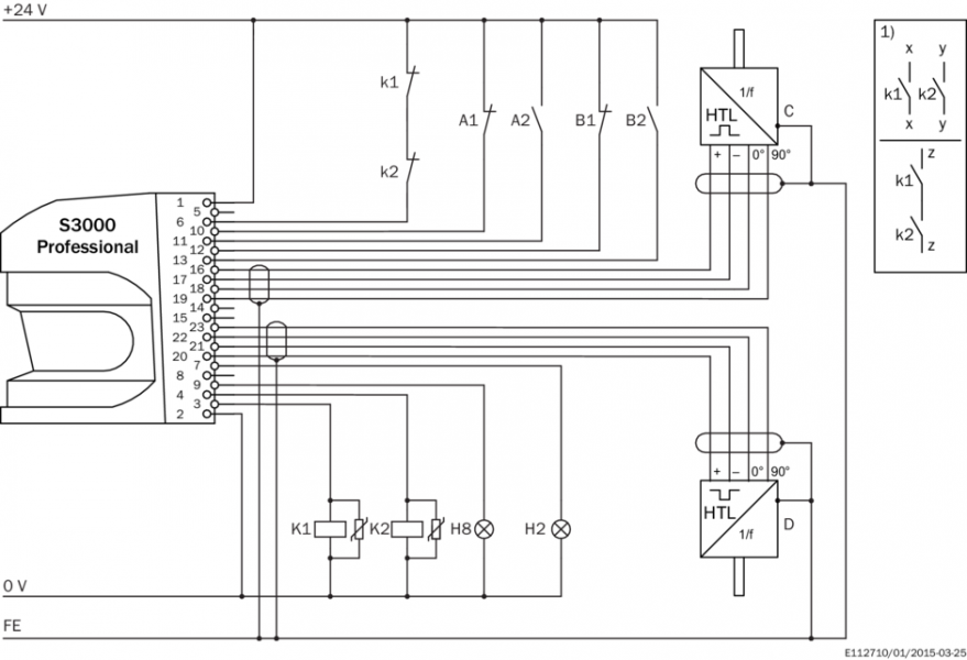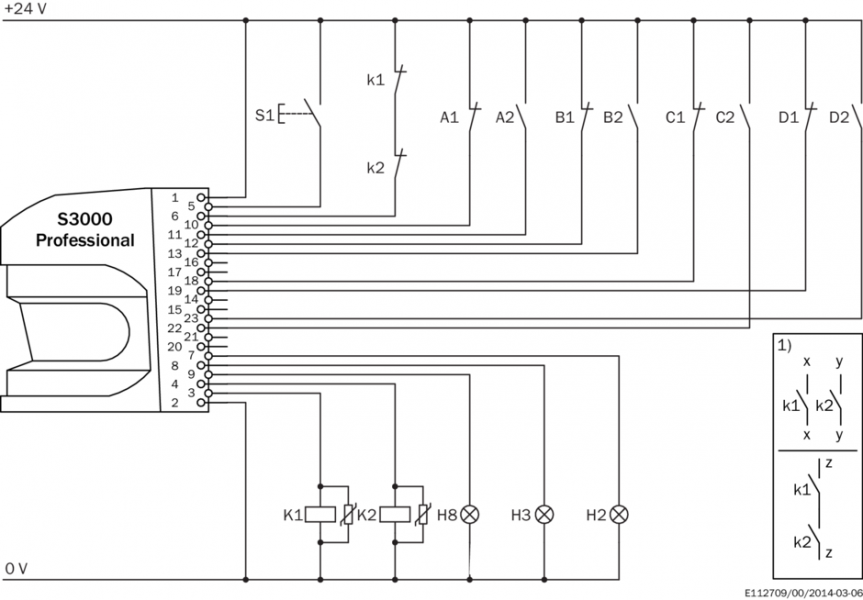 | Выходы | | Предохранительные выходы (устройство переключения выходного сигнала OSSD) | 2 x 500 mA | | Диагностические выходы | 3 x 100 mA 3) |