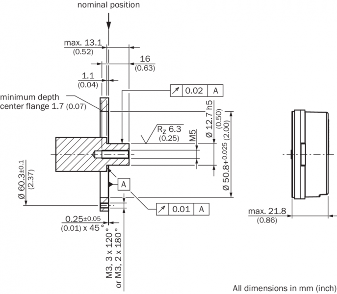 Интегральная нелинейность± 288 Winkelsekunden, Допуски при обработке синусоидальных/косинусоидальных сигналов, типичные значения при номинальном положении ± 0,1 мм и +20 °C