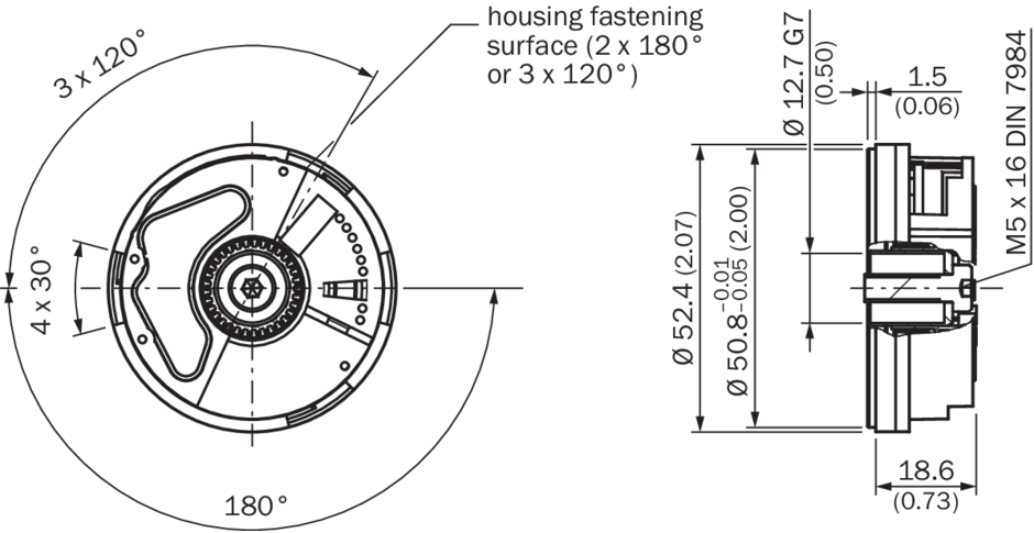 Измерительный шаг20 Winkelsekunden при интерполяции синусоидальных и косинусоидальных сигналов, например 12 бит