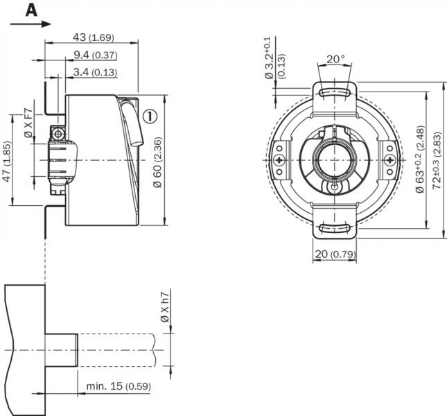 | Кривая кода | С возрастанием, При повороте вала по часовой стрелке, если смотреть в направлении A (см. размерный чертеж) |
