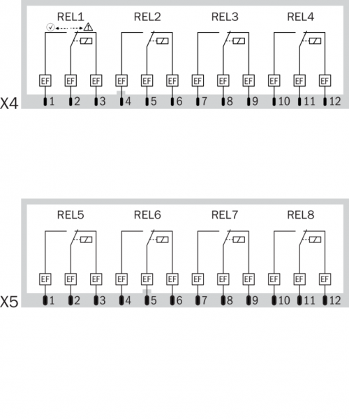 | Цифровые выходы | 8 Релейные контакты:30 V AC, 500 mA / 48 V DC, 500 mAТри релейных выхода по умолчанию для сигнализации неисправностей, сервиса и технического обслуживания 8 Транзисторные выходы:24 V DC, 500 mAСвободная настройка |