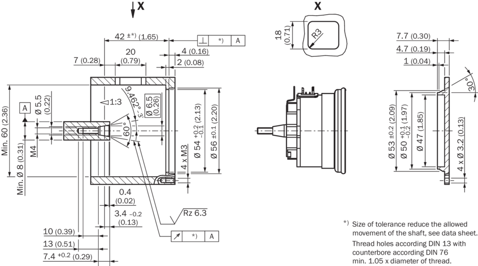 | Кривая кода | С возрастанием, при вращении вала. По часовой стрелке, если смотреть в направлении A (см. размерный чертеж)., При повороте вала по часовой стрелке, если смотреть в направлении A (см. размерный чертеж) |