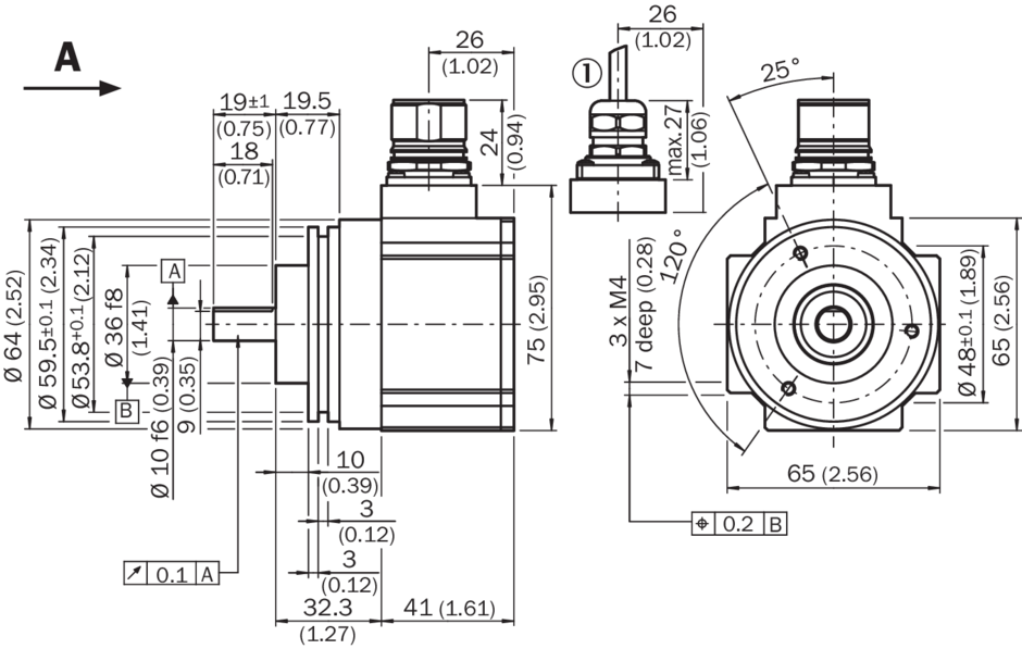 | Кривая кода | С возрастанием, при вращении вала. По часовой стрелке, если смотреть в направлении A (см. размерный чертеж)., При повороте вала по часовой стрелке, если смотреть в направлении A (см. размерный чертеж) |